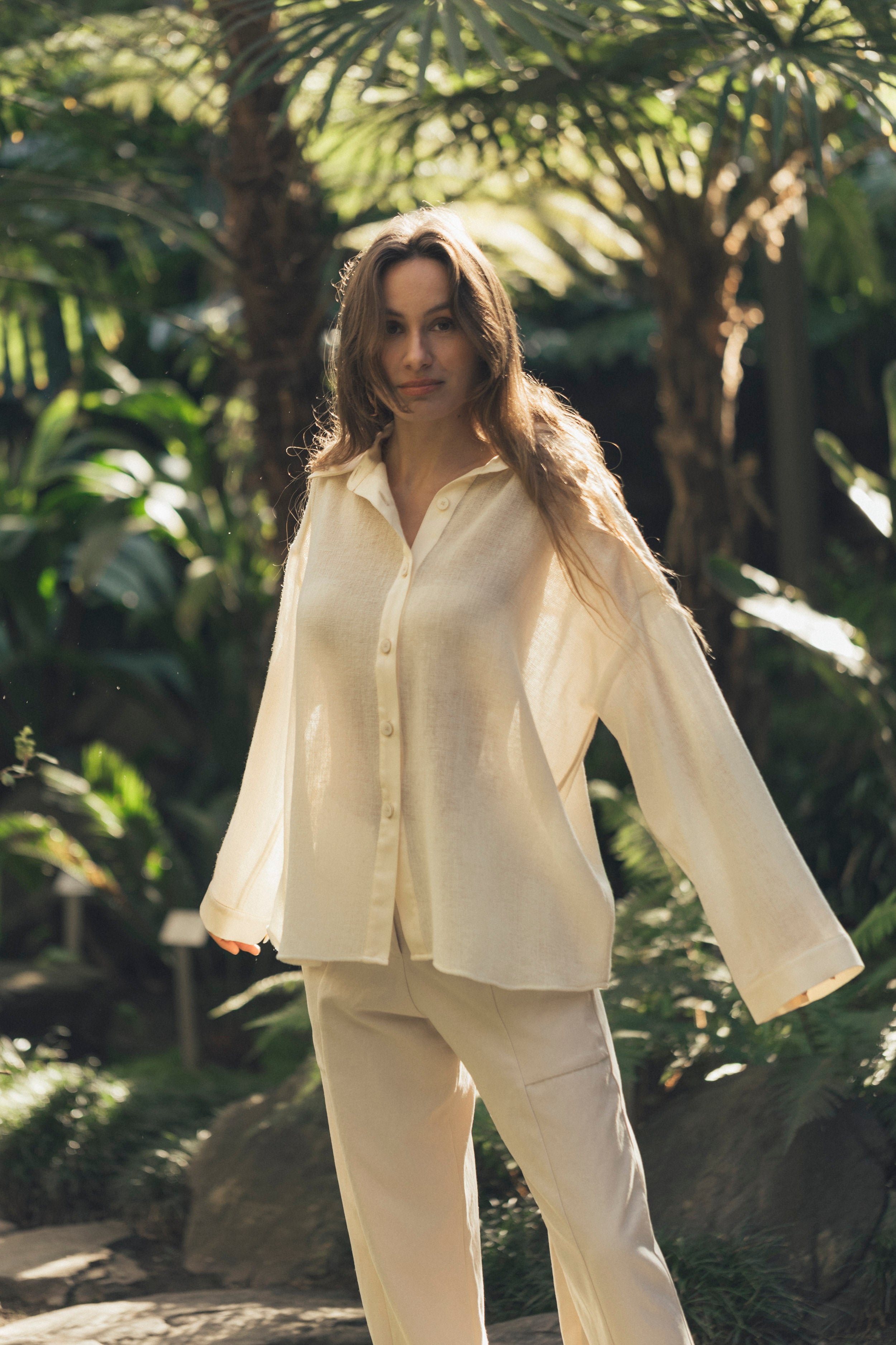Esta camisa vem para te dar um twist ao teu guarda-roupa :) Feita com a inovadora rede de lã burel feito com fio bordaleira, proveniente da Serra da Estrela e com tecido suave liocel. Botões à base de ureia e fécula de batata, certificação OEKO-TEX. Uma peça distinta e delicada.