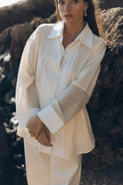 Dentro do conceito minimalista mas sempre com o detalhe que a diferencia. Feita em tecido suave liocel de duas cores e a inovadora rede de lã burel com fio bordaleira proveniente da Serra da Estrela. Botões forrados na frente. Uma peça distinta e delicada.