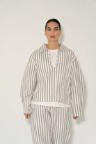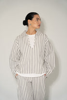 The Antártida blouse is set to become one of the most comfortable pieces in your everyday wardrobe. Made from a soft yet structured fabric with a lightly textured feel, it features balloon-effect sleeves, a small collar, and a wide neckline trimmed with matching fabric. For a complete look, pair your blouse with the Ártico trousers.