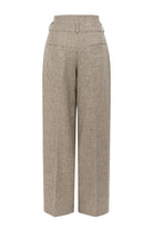 Elegant, lightweight, and refined, these trousers are crafted from 100% merino wool with a subtle small-square pattern. Tailored with front pleats, a high-rise waistband, and double button fastening, they create a flattering, elongated silhouette. Featuring two front and two back pockets, and fully lined down to the knee for comfort. For a polished total look, pair them with the Isabel shirt.