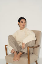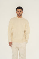 The most cozy sweater ever! Crafted from certificed merino wool, feutaring rew-neck sweater and long sleeves. With a design between different stitches, textures and asymmetries. This piece is very light and soft, providing all-day comfort.