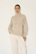 Cozy, lightweight, and soft. Made from 100% extra fine merino wool, the MONTANHA sweater features a medium-height collar, long sleeves with a balloon effect at the cuffs, and fitted wristbands. It combines different knit stitches throughout, creating a comfortable, carefully crafted piece with a truly unique style.