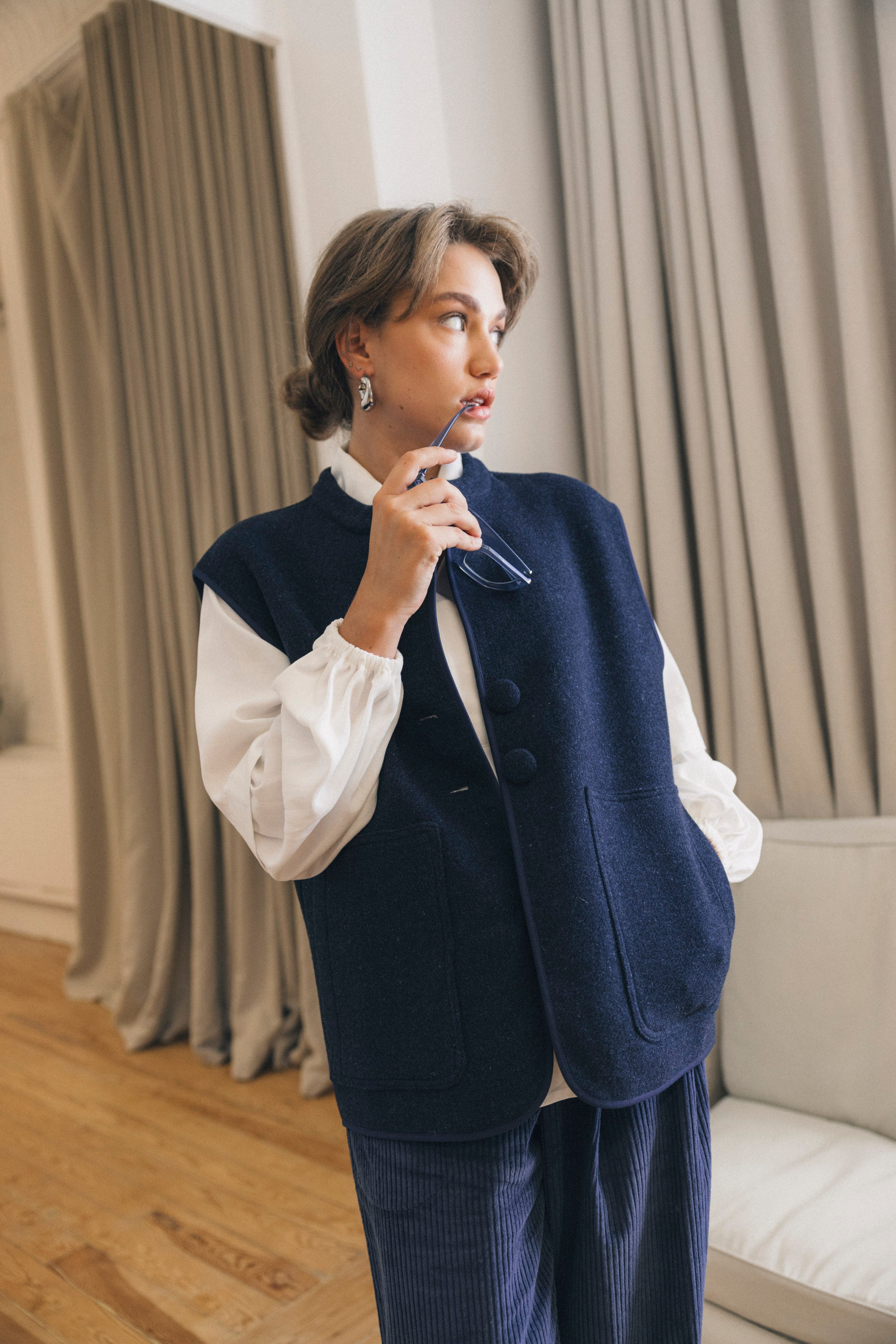 - Cozy and timeless. You can wear it over a soft shirt or with a wool sweater.