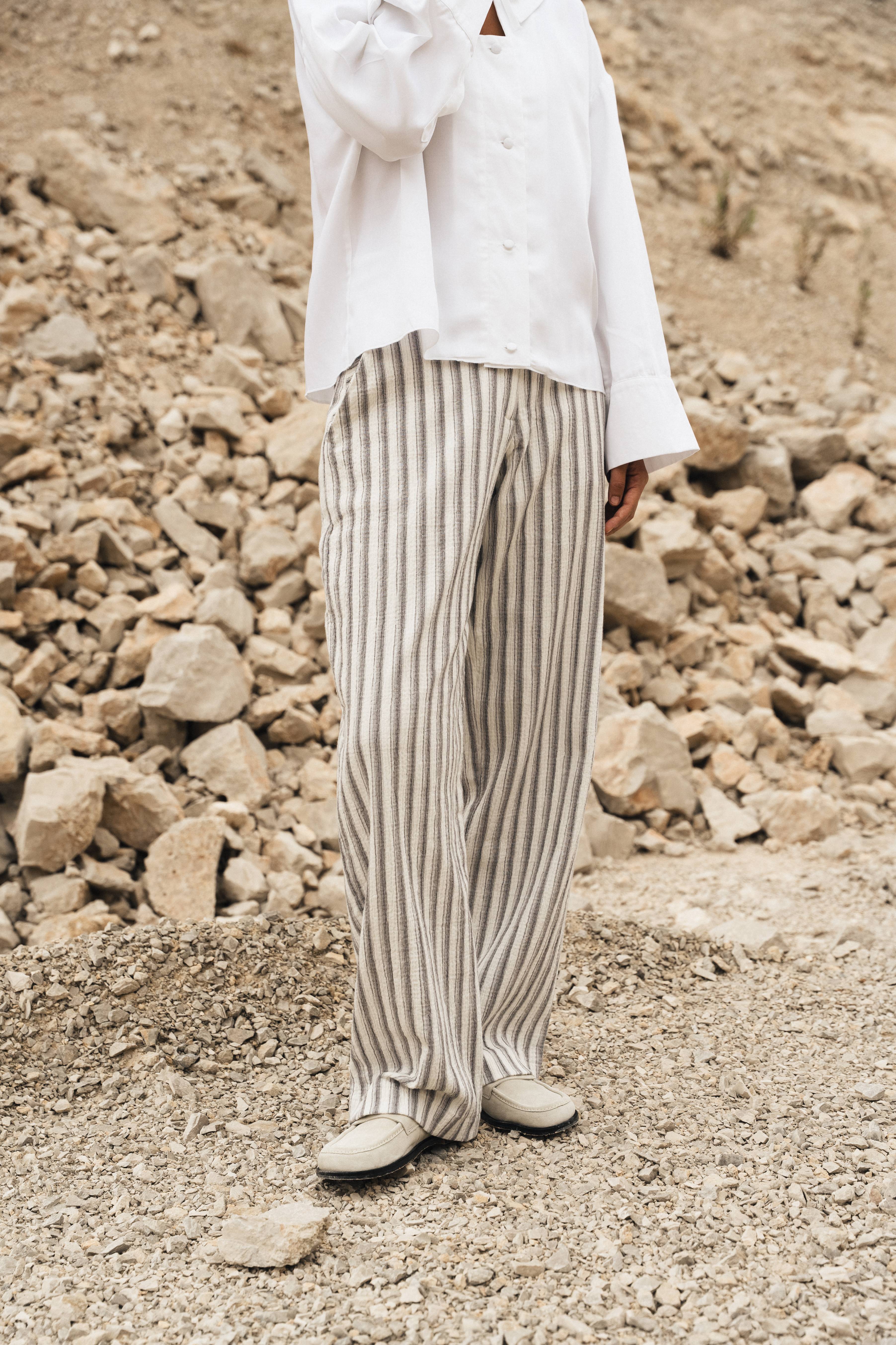 Where comfort meets style! Crafted from a soft yet structured fabric with a subtle textured feel, this piece features two side pockets and two back pockets, a front zip fastening, and belt loops at the waist. For a complete look, pair it with the Antártida shirt.